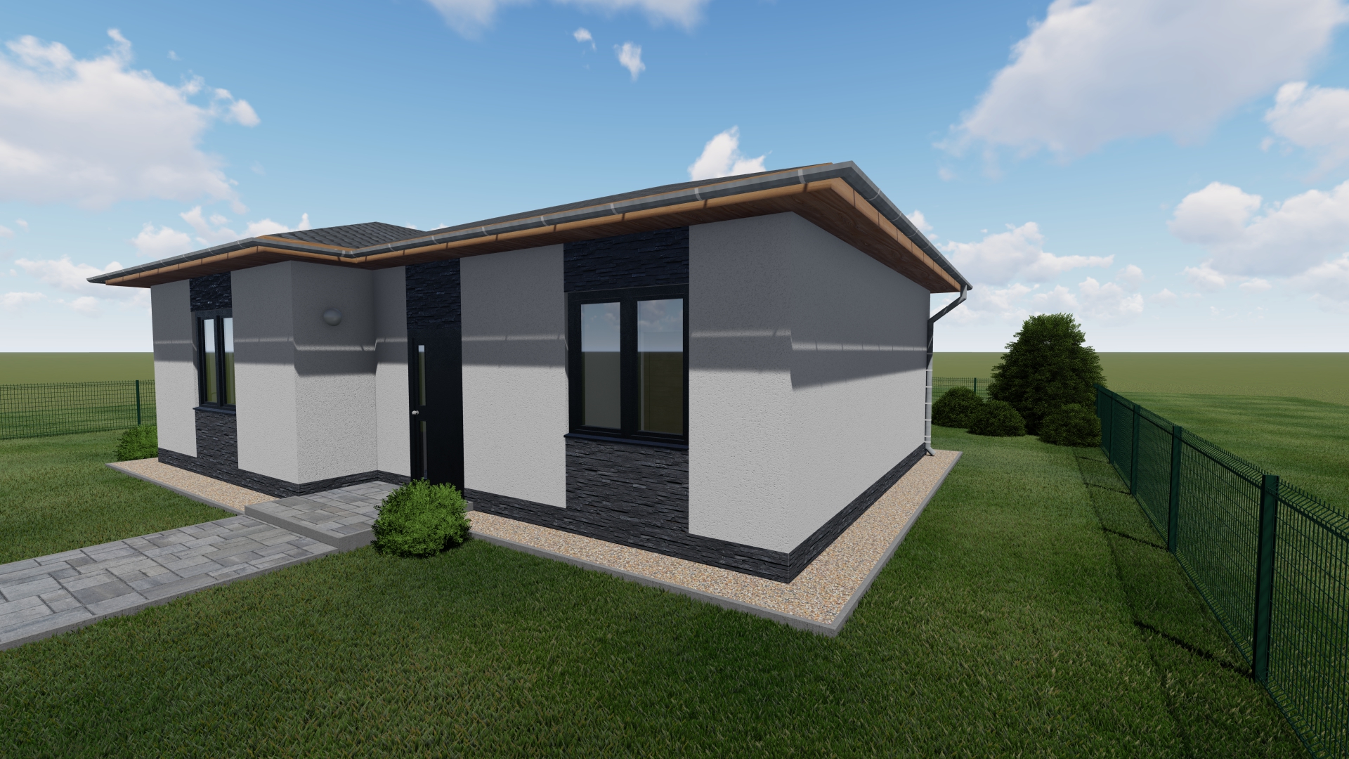 K rodinnému domu je možné přistavět i parkovací zastřešené stání pro osobní automobil nebo samotnou garáž.